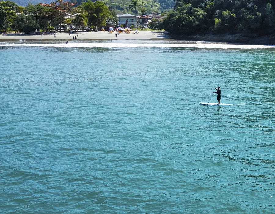 As águas calmas da Prainha de Mambucaba são ideais para a prática, mesmo para iniciantes. Uma experiência relaxante e ao mesmo tempo estimulante.