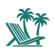 Cadeiras simples e reclináveis, toalhas para uso na areia, além de quiosque com mesas, cadeiras, ombrelones e serviço de garçons.